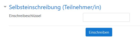 3. Einschreiben in einen Kurs: Den Einschreibeschlüssel (erhält man rechtzeitig) einmal eingeben. Ab sofort ist man dann Mitglied des Kurses und der Zugangsschlüssel wird nicht mehr benötigt und kann vergessen werden.